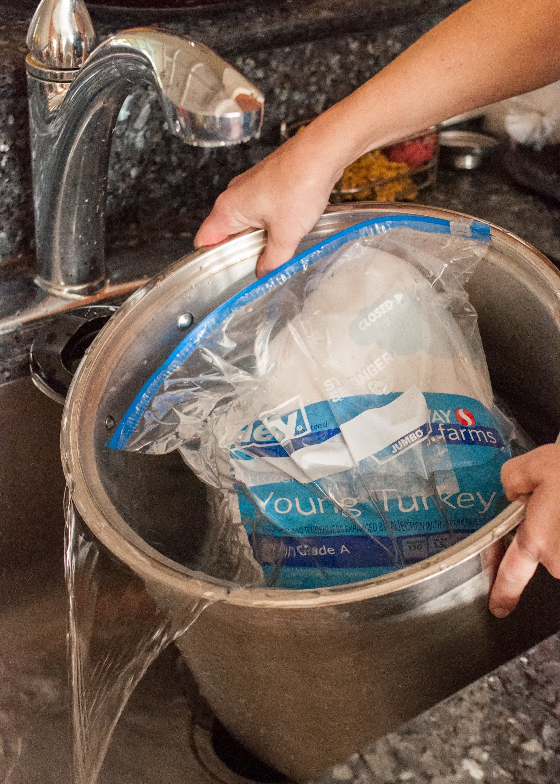 thawing turkey in sink no water